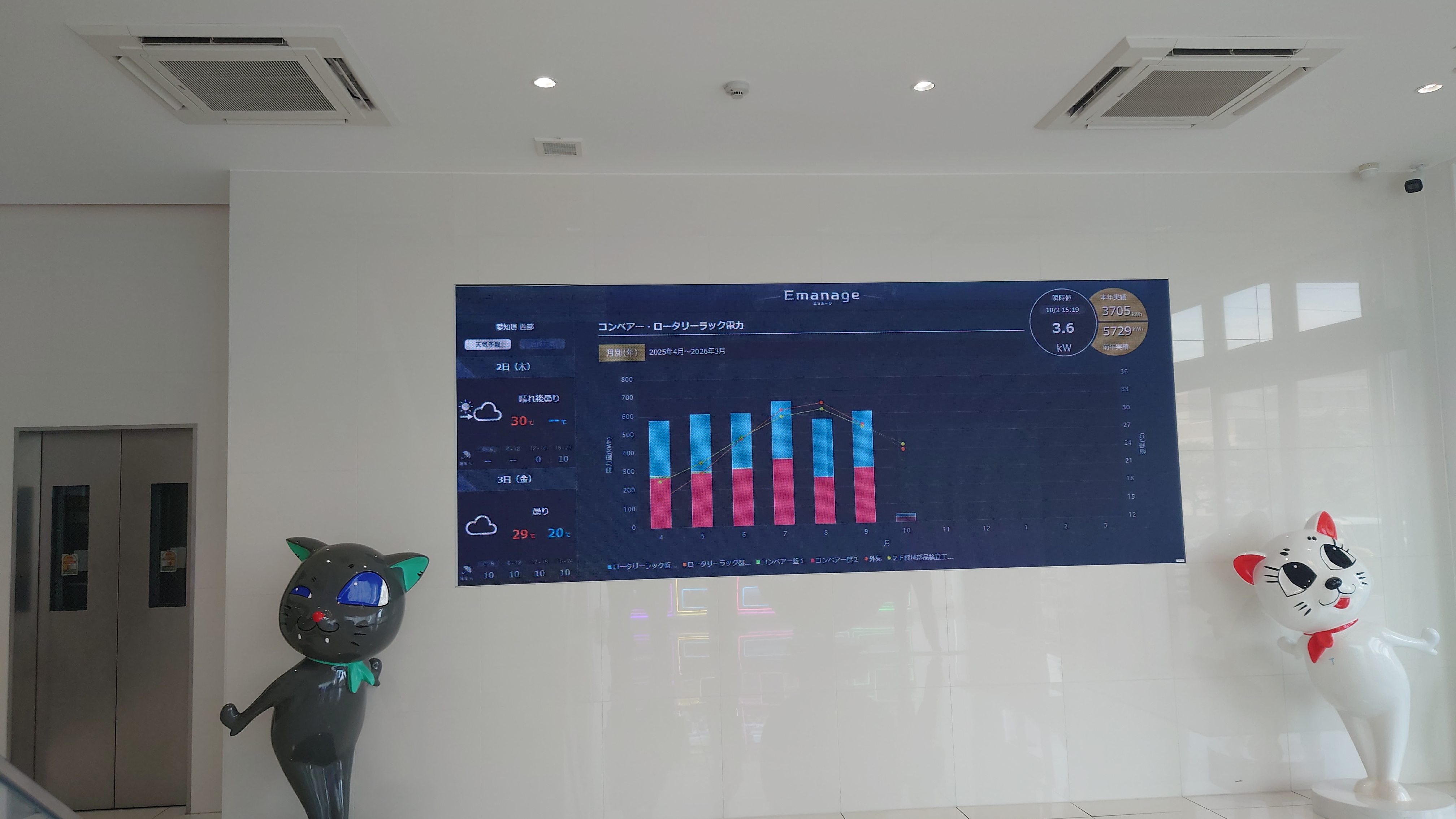 太陽光発電をはじめ、営業成績などリアルタイムで”みえる化”されていて従業員のやる気につながっていました。